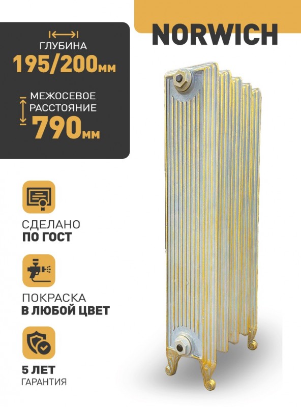 Радиатор NORWICH — яркий представитель стиля индастриал, который тяготеет к вещам прочным, надежным и брутальным. Таков и NORWICH — достойный продукт викторианской эпохи, сделавшей чугун фундаментом развития техногенной цивилизации.